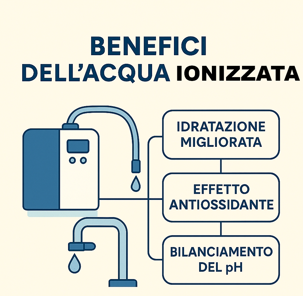 Un’acqua ottenuta tramite ionizzazione, un processo che separa l’acqua in frazioni acide e alcaline.