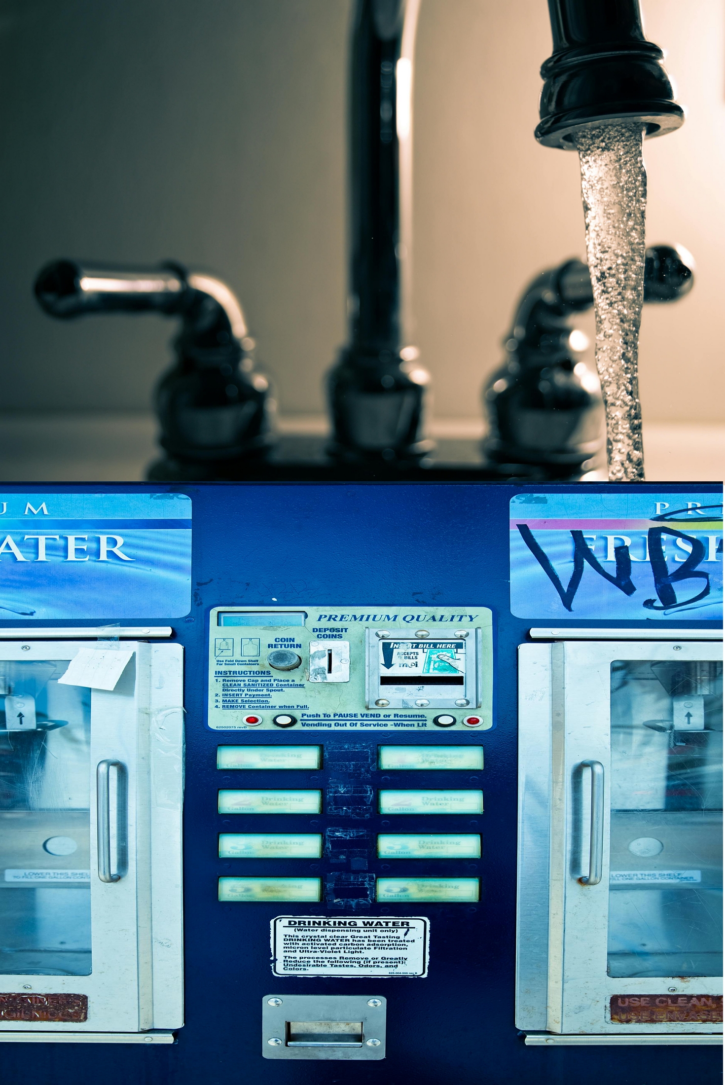 Processo: elettrolisi dell’acqua del rubinetto per separare ioni acidi e alcalini.